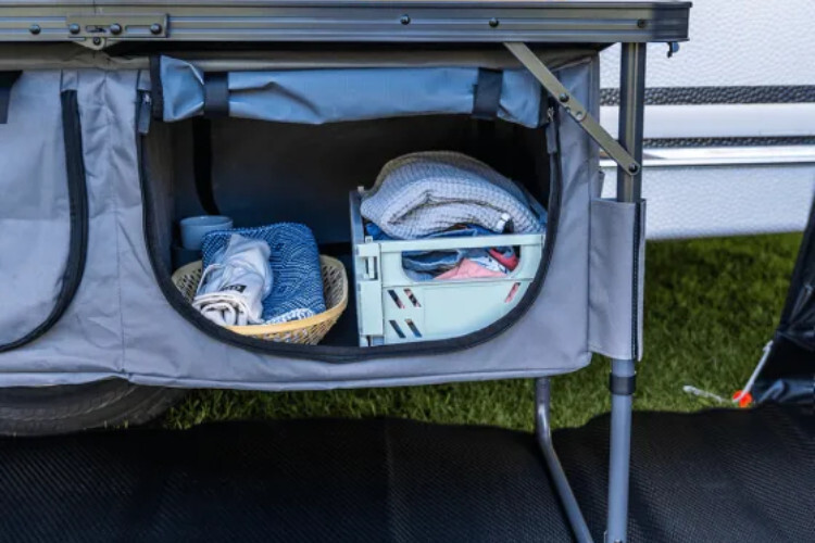 Keep camping gear neatly organised with the Travellife Toledo Storage Unit & Table. Ideal for those who love staying tidy on the road, it combines practical storage with a handy tabletop surface perfect for keeping essentials within easy reach.