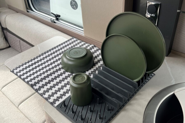 A great addition to any caravan or motorhome kitchen, this drying rack protects worktops from drips and suds with the highly-absorbent microfibre mat. Perfect for those who like to keep their kitchen clean and tidy on the go.