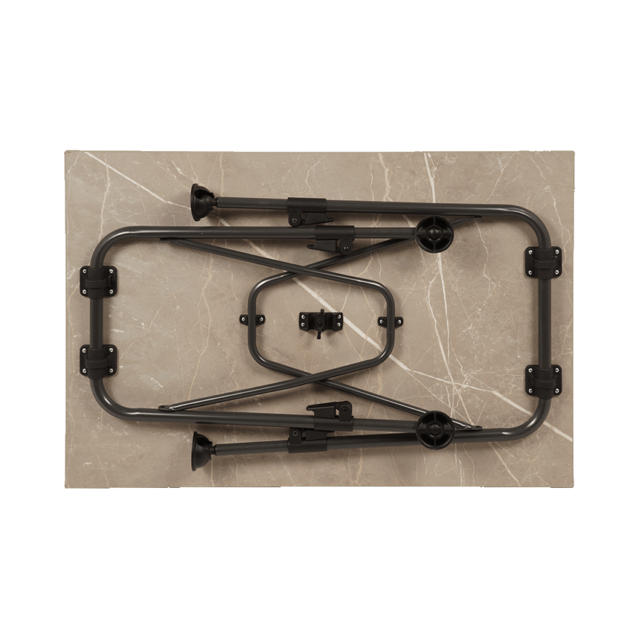 The Mirano camping table is compact, foldable, and very sturdy thanks to its steel legs. The tabletop is made of lightweight exteriolit: a weather-, heat-, and scratch-resistant material. This means you can place hot pans directly on the tabletop. You also don’t have to worry about discoloration, as the anthracite tabletop is UV-resistant. Finally, the Mirano can also be left outside in bad weather. In short: a sustainable choice that will give you years of enjoyment from this luxury camping table.